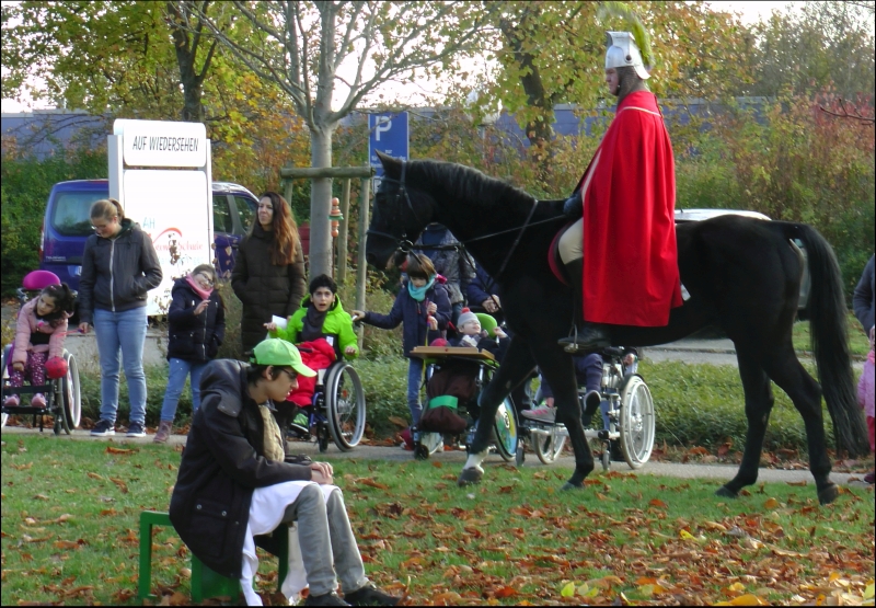 Danach zog ein bunter Laternenumzug über den Schulhof, vorneweg natürlich mit Sankt Martin auf seinem Pferd!