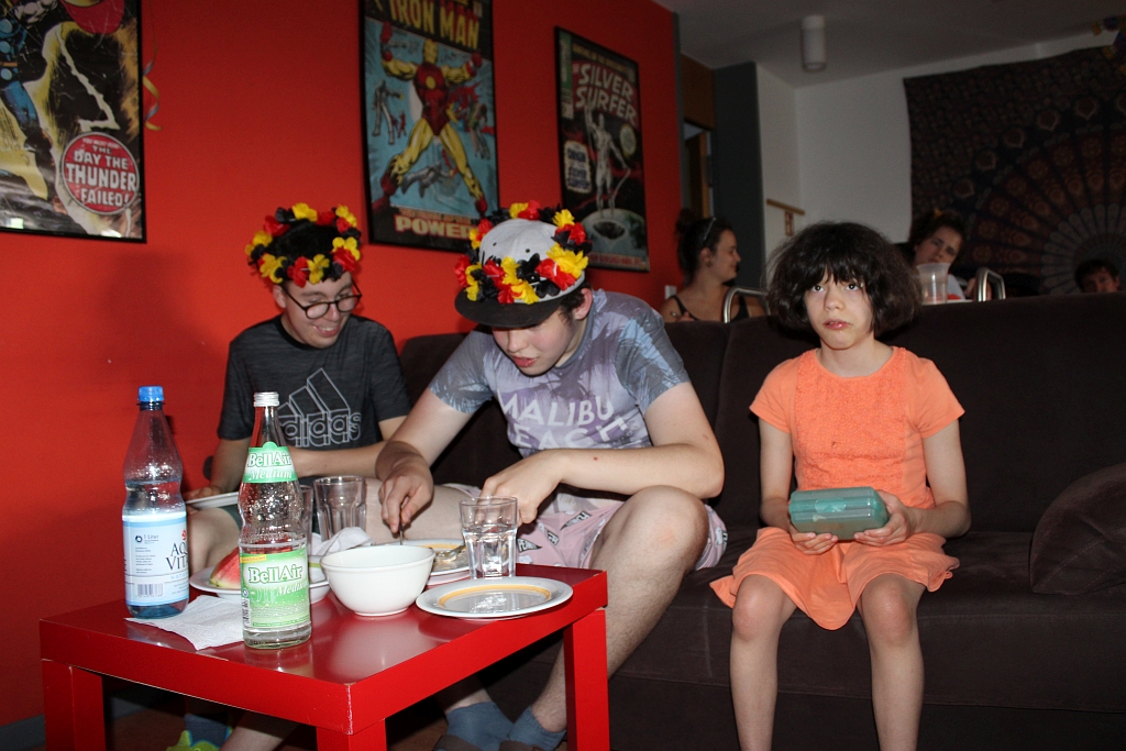 Gemeinsam haben wir das Fußballspiel geschaut im Jugendtreff Deutschland gegen Ungarn. Deutschland hat 2:0 gewonnen.