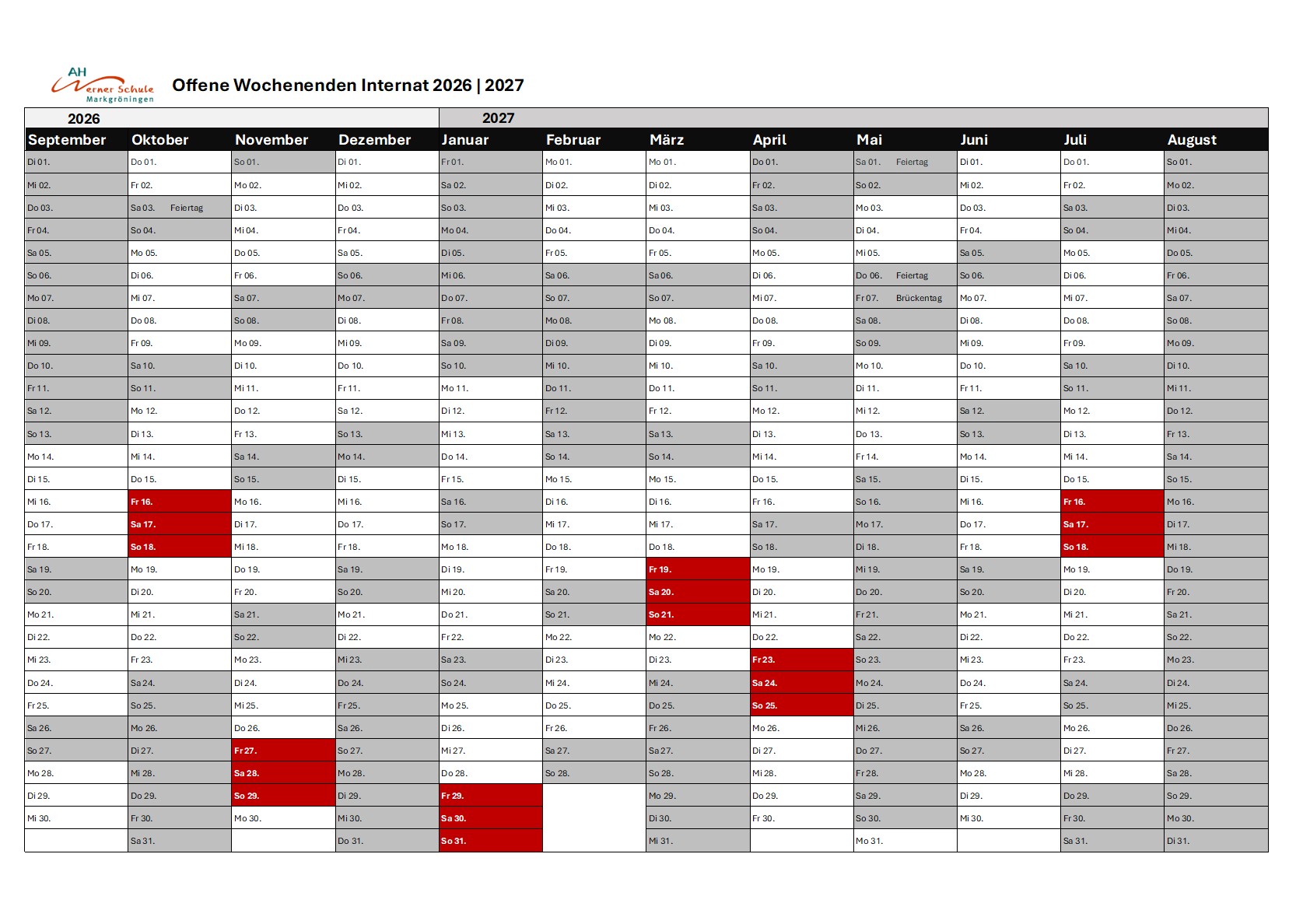 Offene Wochenenden Internat