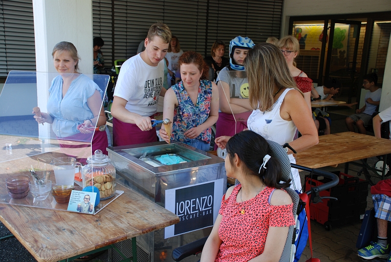 Die großzügige Spende vom Eiscafé LORENZO hat für alle gereicht! Es gab vier Sorten leckeres Eis und auch die Mitarbeiterinnen und Mitarbeiter konnten sich ein Eis abholen. So war die Hitze gut auszuhalten und wir waren uns sicher, dass das nicht das letzte Eis in diesem Sommer war.