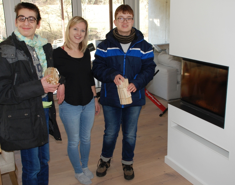 Diese Anfrage erledigten wir sehr gerne durch eine persönliche Lieferung. Unsere Schüler lernten so wieder einmal einen Kunden direkt kennen und konnten sehen, in welchem Kamin unsere Produkte zum Einsatz kommen.
