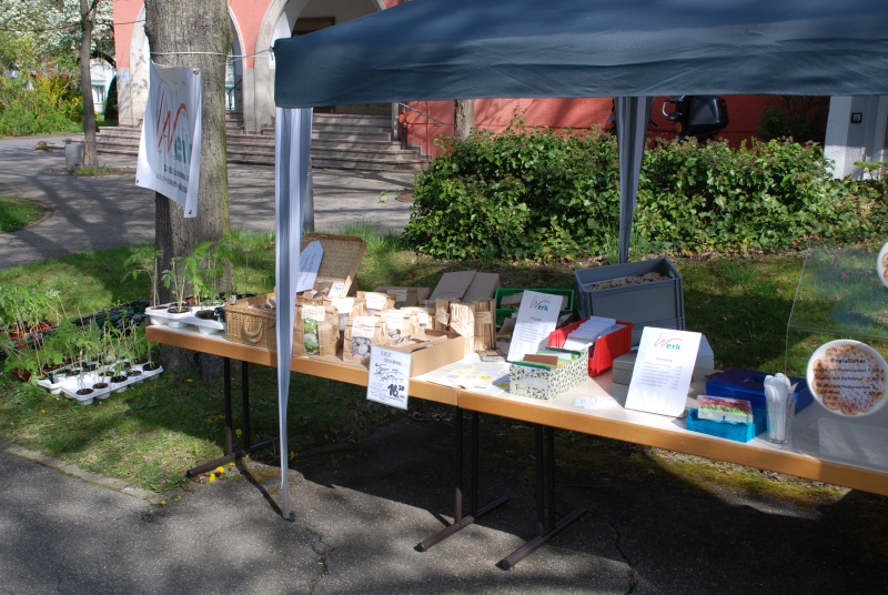 Natürlich waren auch wir die Schülerfirma da. Wir verkauften Sachen wie Markgröninger Spächtele und Grillanzünder, Samenbomben, Tomatenpflanzen und Geburtstagskalender. Auch wieder einmal alles selbstgemacht von den Schüler/innen der August-Herrmann-Werner-Schule. Das Team des IlSE-Cafés verkaufte Waffeln mit Puderzucker und/oder Apfelmus.