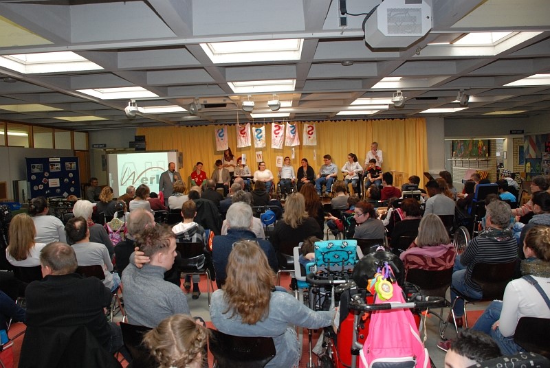 Nach der Eröffnung der Feier durch Herrn Muschel, dem Schulleiter, wurde der Name „AHWerk“ (welcher an den Namensgeber der Schule angelehnt ist) und das Logo der Schülerfirma feierlich präsentiert. Nach weiteren interessanten Reden konnten sich die Schulgemeinschaft und die weiteren geladenen Gäste an den vorbereiteten Ständen aller Arbeitsgruppen über deren Produkte und Dienstleistungen informieren. Schülerinnen und Schüler der Schülerfirma waren für die Bewirtung zuständig und verteilten Snacks und Getränke.