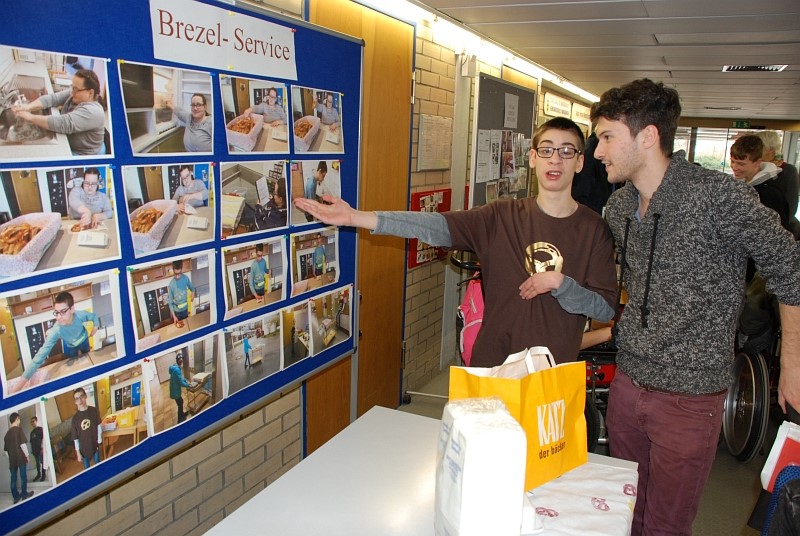Diese Produkte und Dienstleistungen werden in der Hauptstufe II und in der Berufsschulstufe von zahlreichen Arbeitsgruppen hergestellt und angeboten. In der Schülerfirma arbeiten einmal wöchentlich 10 Schülerinnen und Schüler an den Aufgaben der internen Buchhaltung, der Produktpräsentationen und an Themen der Öffentlichkeitsarbeit. Dabei werden sie von den Lehrkräften Jochen Göbel, Steffen Zimmermann, Sarah Fix und Michaela Reutter unterstützt.