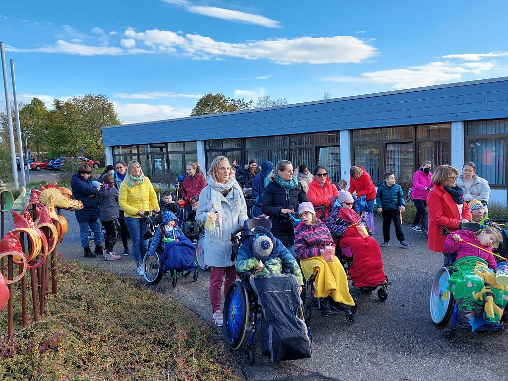 Viele Kinder und Erwachsene waren beim Umzug dabei. Danach durften die Kinder das Pferd streicheln. „Das war schön!“. „Die Atmosphäre auf dem Laternenlauf war toll!“