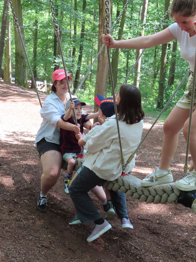 „Wir waren in dem Wildparadies Tripsdrill. Ich habe ein Damwild gefüttert. Das war sehr cool. Es gab auch eine Flugshow. Ich habe den Weißkopfseeadler gesehen. Der Andenkondor ist knapp über die Köpfe geflogen. Der Mönchsgeier mag gerne Schnürsenkel und Rucksäcke. Wir waren auch Eis essen. Ich war mit Frau Bochinski auf der Schaukel. Wir waren bei den Schafen.“