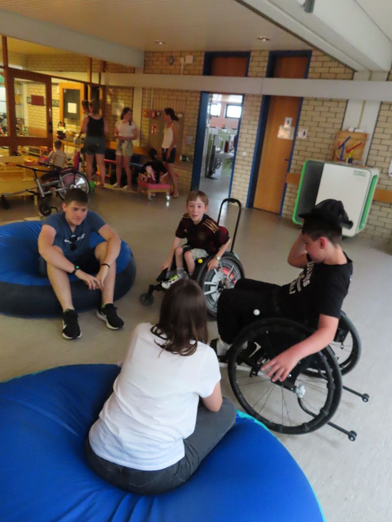 „Wir durften in der Aula spielen. Wir hatten die ganze Aula für uns. Das fand ich echt richtig cool. Nach der Pause gab es dann lecker Abendessen. Da war ich dann voll müde! Vielleicht war es wegen der Wärme. Nach dem Abendessen ging es dann ab ins Schwimmbad. Da durfte ich zeigen, wie gut ich schwimmen kann. Ich bin dann mit meinen Schwimmflügeln und den Flossen ganz alleine auf dem Rücken geschwommen. Dann ging es ins Bett. Ich hab geschlafen wie ein Braunbär. Als wir aufgestanden sind, haben noch einige geschlafen. Als dann endlich alle aufgestanden sind, gab es lecker Frühstück. Wir durften dann nochmal in der Aula spielen. Dann ging es auf den Sportplatz. Und dann durften wir noch Bügelperlen machen.“