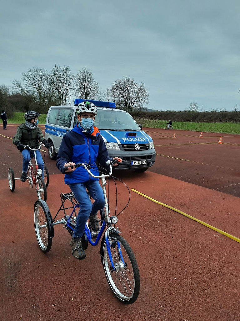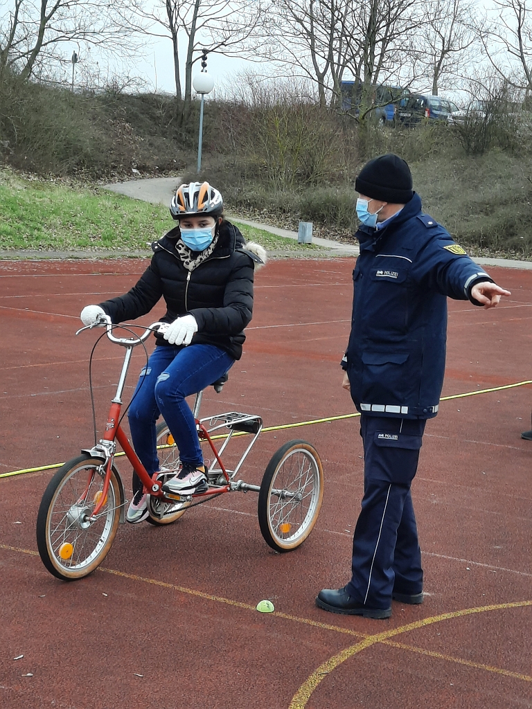 Am 23.März 2021 kam die Polizei zu uns an die Schule. Das Wetter war an diesem Tag gut, so dass wir draußen auf dem Sportplatz fahren konnten und nicht in die Turnhalle ausweichen mussten.