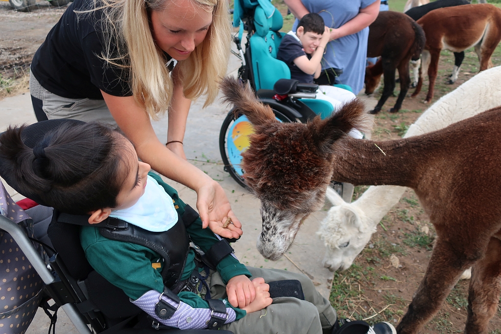 Einige von uns hatten ein bisschen Angst vor den Alpakas und durften mit ein bisschen Abstand und einem Sicherheits-Zaun die Alpakas beobachten. Jeder hatte die Möglichkeit, selbst die Nähe zu den Alpakas zu bestimmen. Frau Eppinger ist dabei auf die individuellen Bedürfnisse der Schülerinnen und Schüler eingegangen.