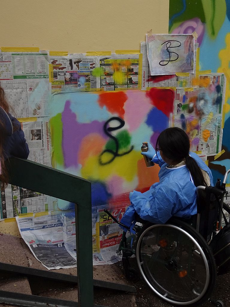 Unsere Dienstagsgruppe hat kürzlich an einem Graffiti-Wettbewerb teilgenommen und es geschafft, mit ihren Entwürfen in das Gesamtkunstwerk aufgenommen zu werden. Die Stadt Ludwigsburg – Kunst im Kreishaus – schrieb diesen Wettbewerb aus. Eine tolle Leistung, die sie sich durch ihre harte Arbeit und ihr Talent verdient haben.