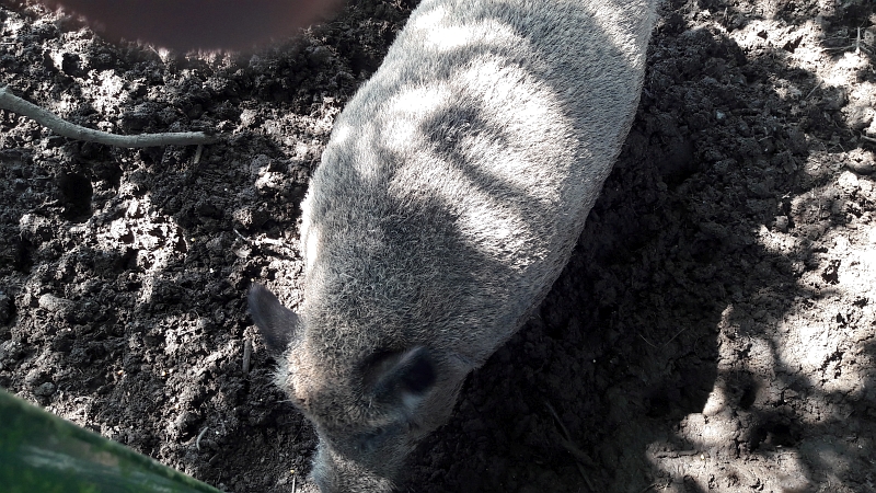 Der Tierpark liegt in einem kleinen Wald und wir hatten so an diesem sommerlichen Tag viel Schatten. In einem etwa eineinhalbstündigen Rundweg konnten wir Ziegen, Rinder, Rotwild, Guanako, Wildschwein, Wisente, Esel, Waschbären und einige andere Tiere sehen.