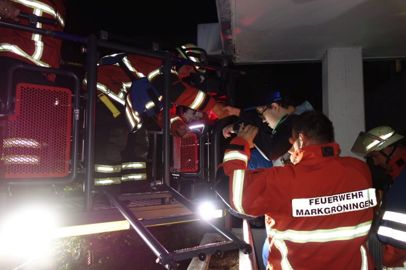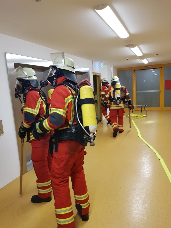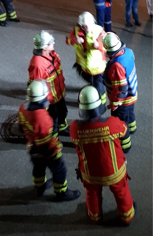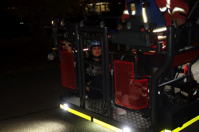 Im Oktober war abends die Feuerwehr da und führte eine Übung durch.