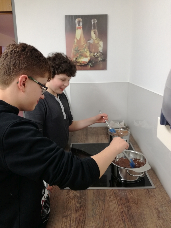 Diese Woche haben wir dann aus Nüssen und geschmolzener Schokolade leckere Nussberge gemacht. Beim Nüsse schneiden, Schokolade schmelzen, Nussberge machen und Aufräumen hatten wir sehr viel Spaß!