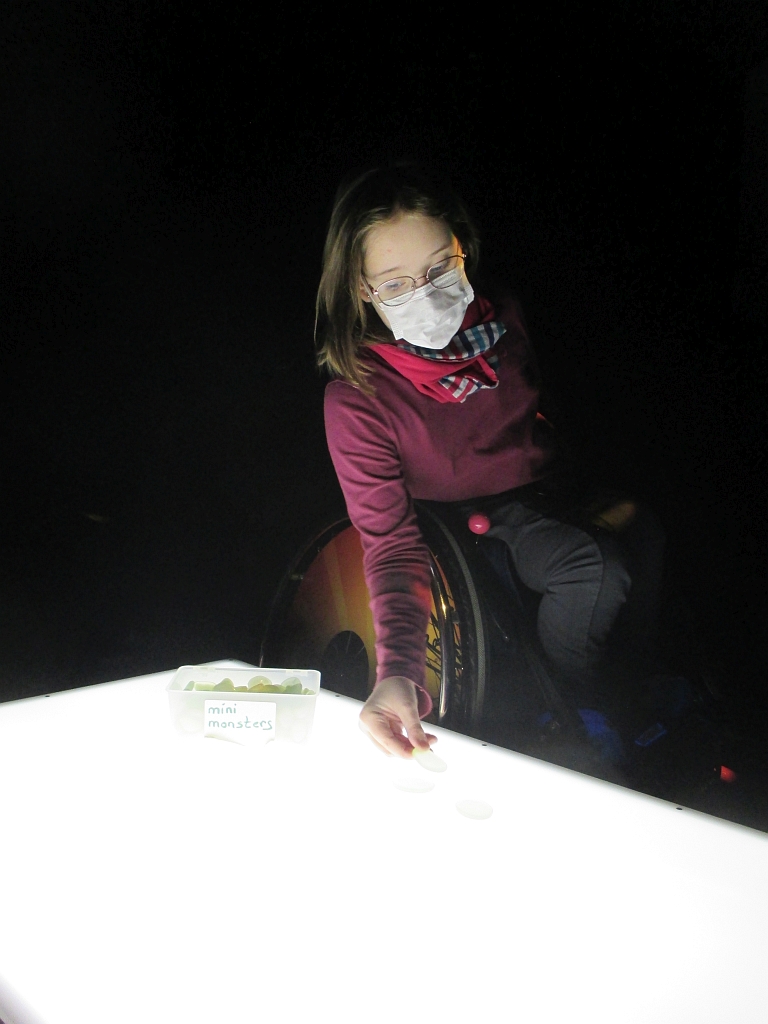 Im "Dunkelraum" mit Lichteffekten herumprobieren oder sich sein Abendbrot selbst gestalten. Da vergeht die Zeit sehr angenehm.