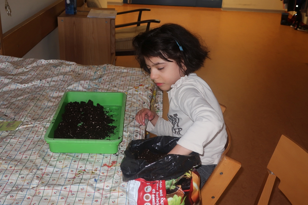 Gekonnt säte Jessica auch dieses Jahr wieder unser Gemüse ein.