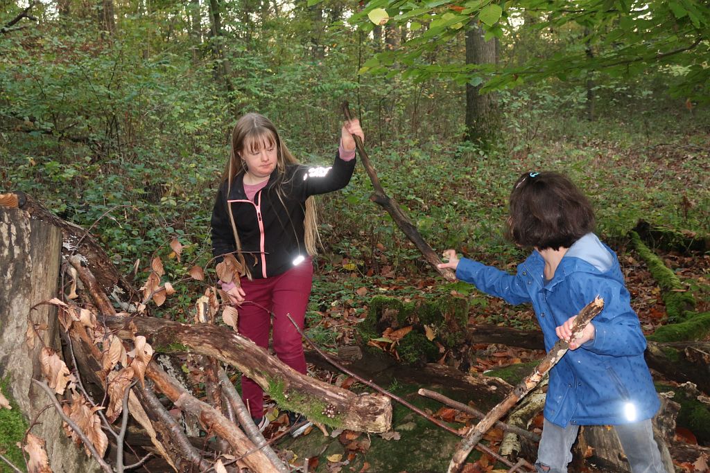 Am Donnerstag nutzten wir das sonnige Novemberwetter für einen Spaziergang im Wald. Wir bauten einen Unterschlupf und machten uns auf die Suche nach Waldgeistern.